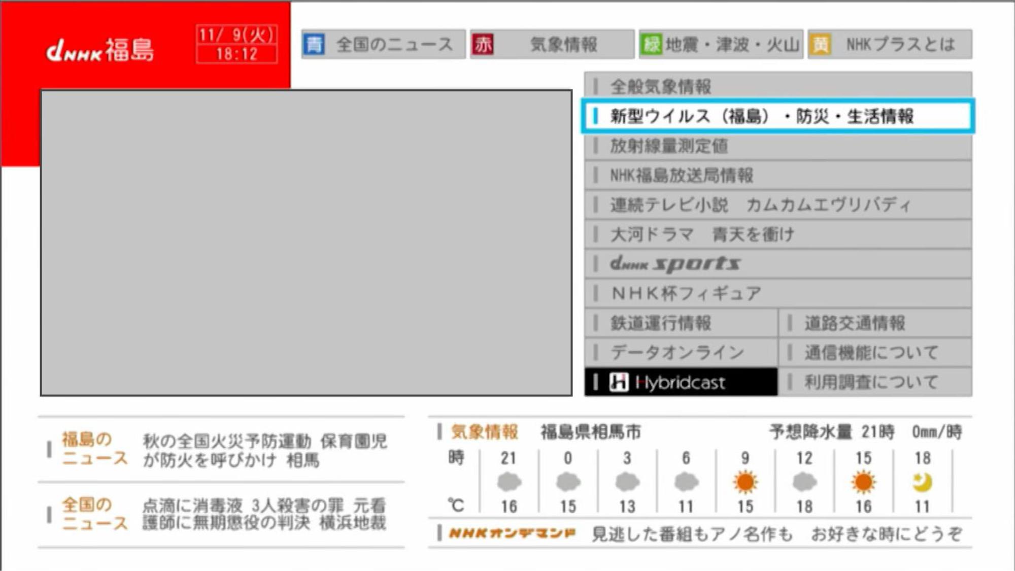 テレビのリモコンのdボタンを押し、データ放送の画面を表示ください。